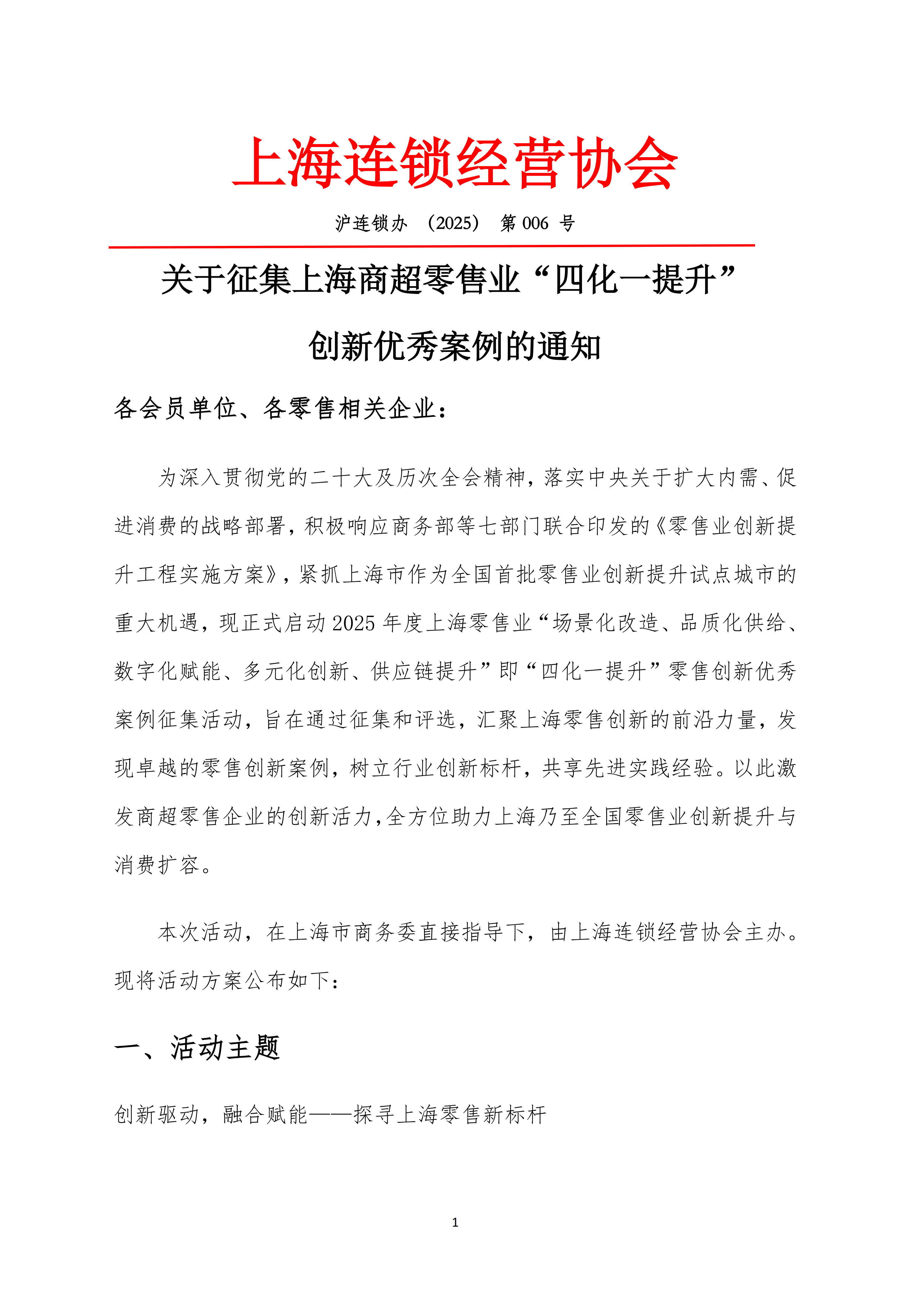 关于征集上海商超零售业“四化一提升” 创新优秀案例的通知