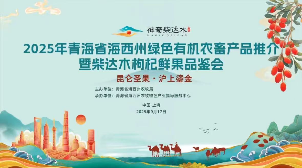 9月17日,以“昆仑圣果・沪上鎏金”为主题的2025海西州绿色有机农畜产品推介暨柴达木枸杞鲜果品鉴会,在上海市环球港圆满落幕。本次活动由青海省海西州农牧局主办,青海省海西州农牧局特色产业指导服务中心承办,青海省海西州枸杞产业协会、青海省海西...